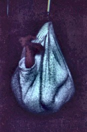 hanging from the ceiling upside-down in a bag. It's lucky Paint Shop